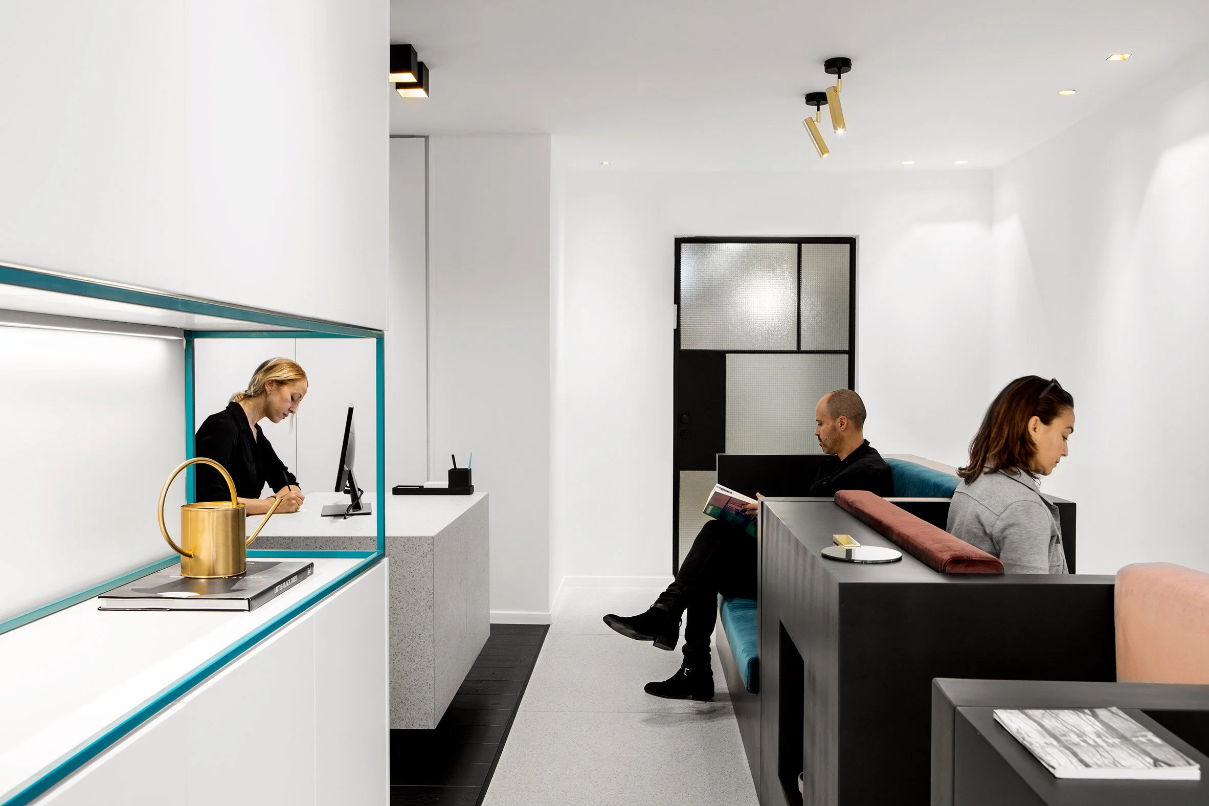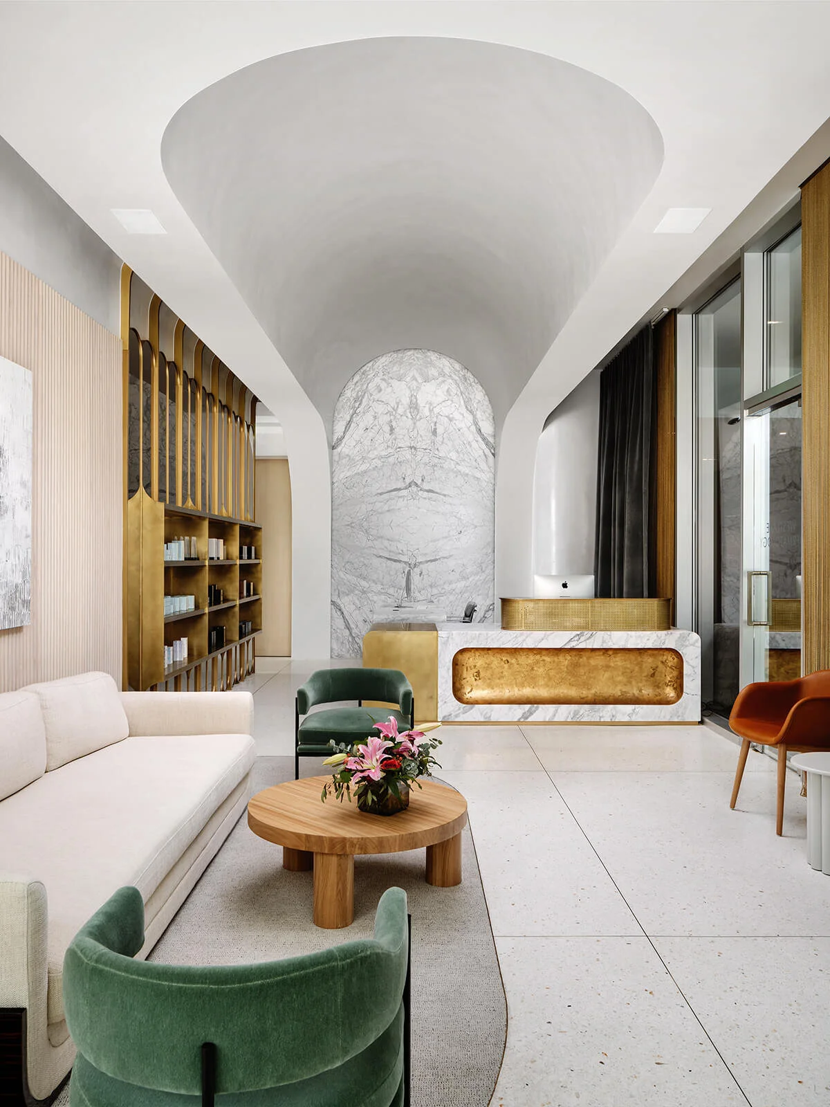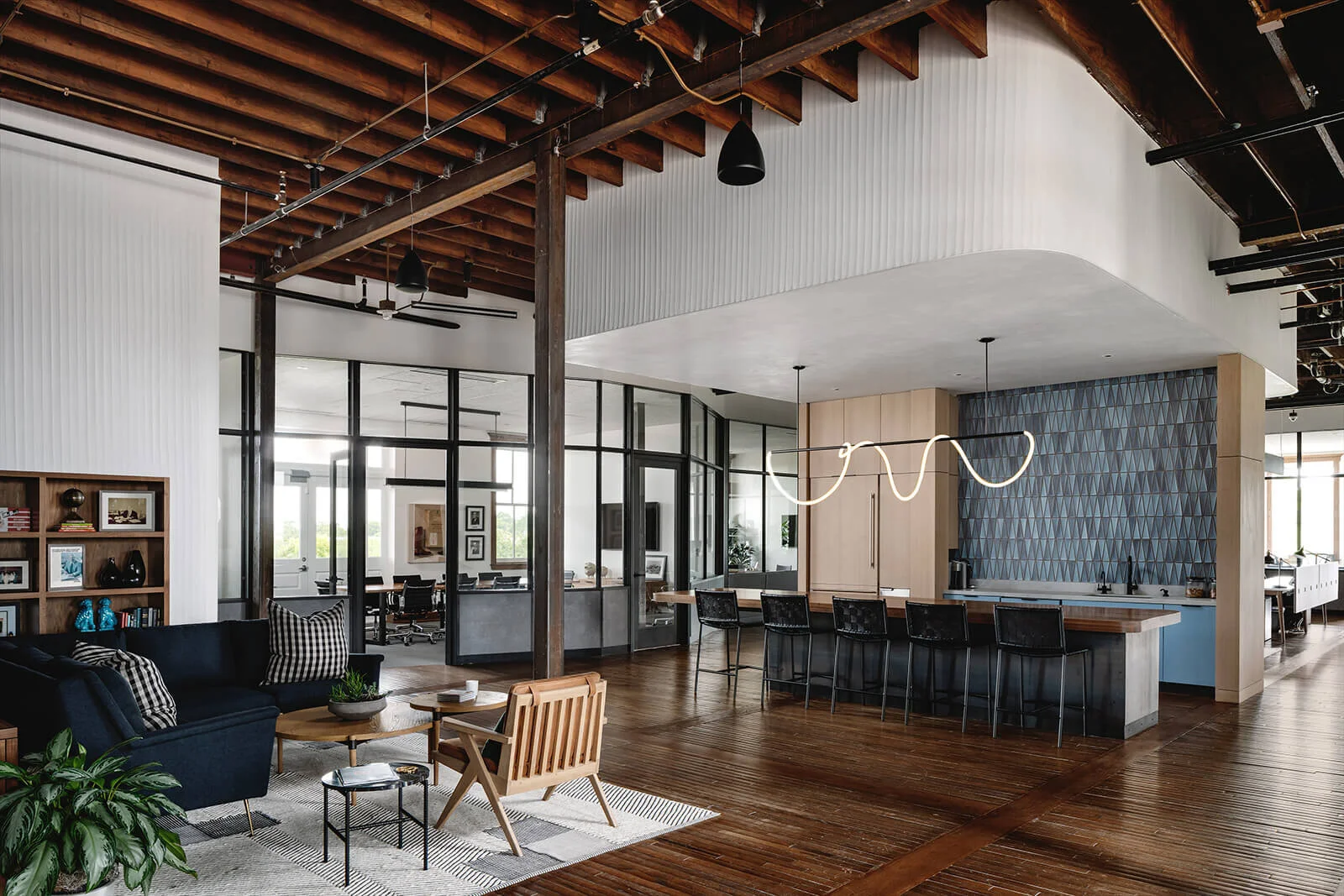 Currently in progress, this flex-space rooftop lounge is designed to function as both a tenant amenity and private event venue. Hudson & Nine envisioned this modern metro oasis, a completely convertible concept that can be transformed to accommodate a wide range of entertaining needs from casual coffee meeting in private pergolas and yoga classes on the “lawn”, to afterwork cocktails and sky-high wedding receptions,